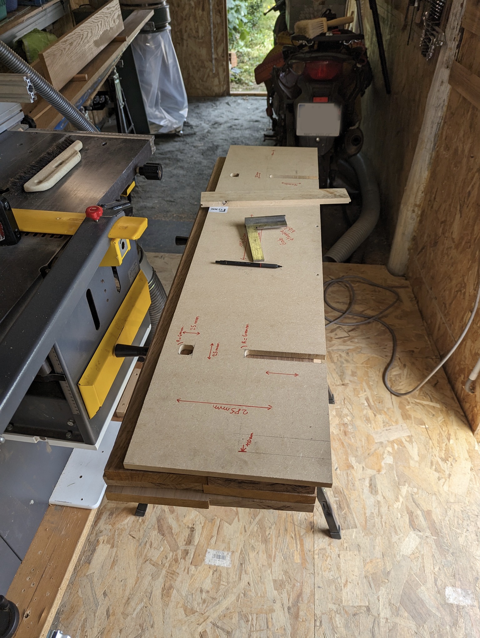 All the shelves together before cutting them to the right dimensions. Now it's time for the long board to be done !